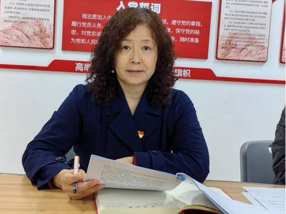 宣传委员任旭凯领学了习近平总书记在中央党校建校90周年庆祝大会暨2023年春季学期开学典礼上发表的重要讲话《坚守党校初心 努力为党育才为党献策》;青年委员李政领学了习近平总书记在参加江苏代表团审议时的重要讲话《牢牢把握高质量发展这个首要任务》;党员教师吴凤珍领学了廉洁自律警示案例《揭掉公款旅游“隐身衣”》等内容。