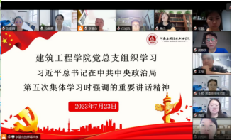 为持续推动学习贯彻习近平新时代中国特色社会主义思想主题教育走深走实,根据学校党委学习计划安排,2023年7月23日晚上,建筑工程学院党总支以线上形式开展主题教育学习交流研讨会,会议由学院党总支书记马春燕主持,院长张虎及全体教职工参加。
