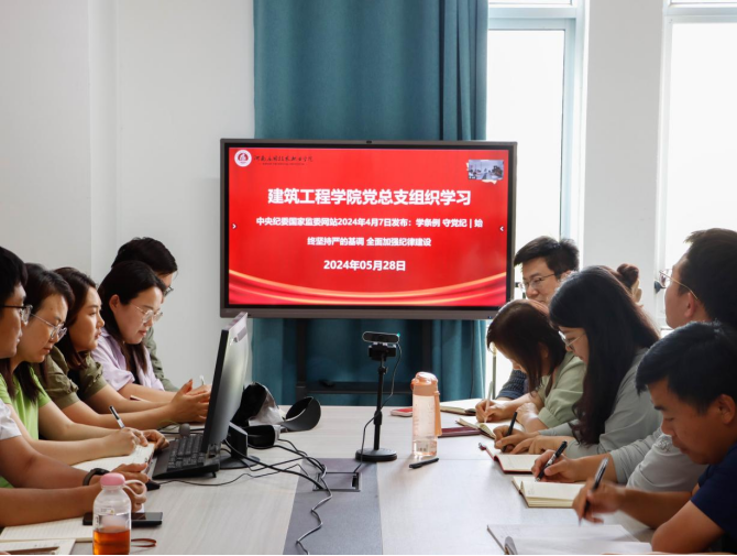 为深入学习贯彻习近平总书记关于党纪学习教育的重要讲话和重要指示精神,认真贯彻落实学校党委关于开展党纪学习教育的相关部署,2024年5月28日,建筑工程学院党总支在郑州校区办公楼516党员活动室(开封校区C202)组织召开党纪学习教育专题学习。本次会议采取东西校区视频连线,线上、线下相结合的方式,会议由建筑工程学院党总支书记张虎主持,院长李勇及全体教师党员参加。
