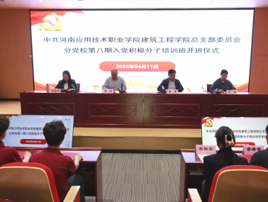 为深入学习贯彻习近平新时代中国特色社会主义思想和党的二十大精神,提高入党积极分子的思想水平和理论素养,把好入党“第一关”,切实做好党员发展工作。2025年4月11日,建筑工程学院党总支于开封校区北院D102会议室举行第八期分党校入党积极分子培训班开班仪式,学院党总支书记张虎,党总支副书记、院长李勇,党总支副书记刘亚娟,组织委员王莹,部分党员教师及第八期入党积极分子出席开班仪式。仪式由刘亚娟主持。