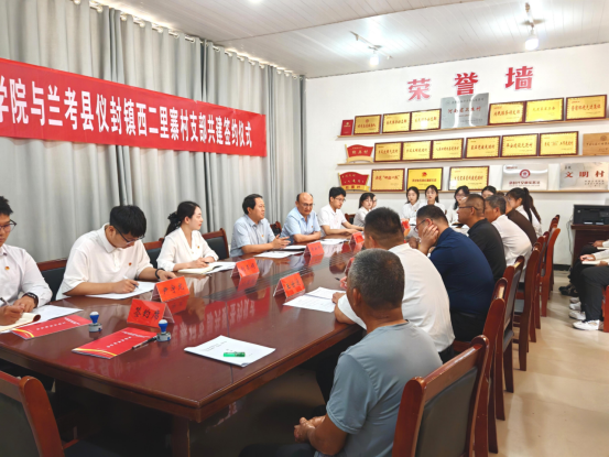 在热烈的氛围中,建筑工程学院学工党支部书记刘亚娟与仪封镇西二里寨村党支部书记王世通共同签署了《支部共建协议》。这标志着双方在党建工作、乡村建设等方面将开展全方位、深层次的合作。未来,双方将通过组织共建、活动共办、资源共享等方式,不断提升基层党组织的凝聚力和战斗力,为乡村振兴提供坚实的组织保障。