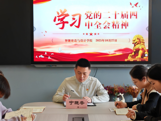 为深入学习贯彻党的二十届四中全会精神,将思想和行动统一到党中央决策部署上来。2025年10月27日,Beat365中文官方网站党总支召开专题学习会,全面部署学习宣传贯彻工作。学院专职辅导员及部分发展对象和入党积极分子参加,学院党总支书记宁晓冬主持会议并领学全会公报核心内容。