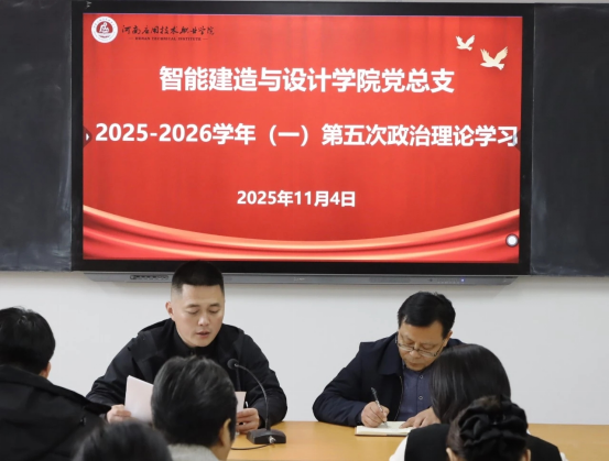 会议上,宁晓冬带领全体教职工系统学习第一议题:2025-10-24 中共中央召开党外人士座谈会习近平主持并发表重要讲话;中国共产党第二十届中央委员会第四次全体会议公报;2025 年《以案释纪说法》10 辑。会议中,宁晓冬重点解读了习近平总书记关于“十五五”时期锚定社会主义现代化目标、推动科技自立自强、推进共同富裕的重要部署,同时结合学院实际,明确将理论学习与智能建造领域人才培养、技术创新工作相结合。在学习过程中,全体教职工一致表示,要将科技自立自强要求融入课程改革,在智能建造技术、绿色建筑设计等领域加强校企协同,培养适配行业需求的高素质人才,把学习成效转化为教学科研的实际行动。