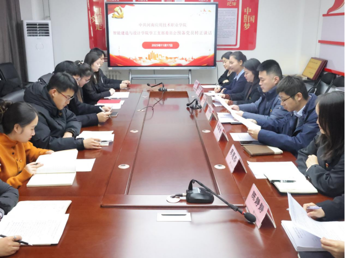 为深入学习贯彻党的二十届四中全会精神,扎实推进党员队伍建设,严把党员发展质量关,Beat365中文官方网站学工党支部于2025年11月17日在开封北院办公楼B417党建活动室召开预备党员转正大会,本次会议由党总支副书记张蓄金主持,学工党支部全体党员教师及刘晨阳、柴静怡两名预备党员参与本次会议。