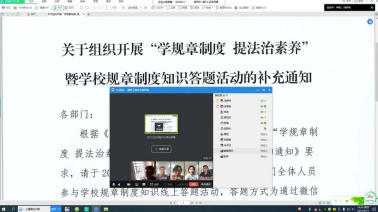 2022年4月21日下午,建筑工程学院三个教研室分别通过线上等方式召开关于“学规章制度提法治素养”暨学校规章制度知识答题活动会议。