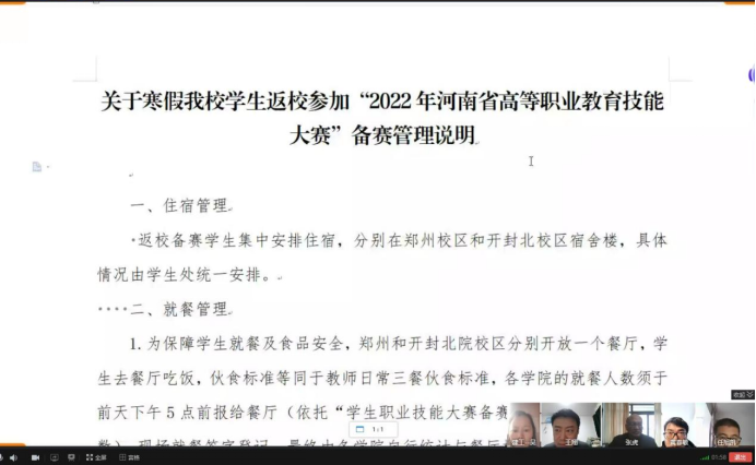 任旭凯根据学校文件,对学生返校后住宿、就餐、安全管理、疫情防控等相关工作进行了具体安排,并提出各项目指导教师和参赛队员要汲取经验、对标找差,利用接下来的时间,完善备赛细节,全力冲刺,力争取得新的突破。