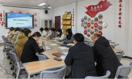 2024年3月5日下午,建筑工程学院组织开展2024年春季学期第一次业务学习活动,本次学习采取郑州校区A516与开封北校区C202远程视频连线,线上、线下相结合的方式进行,会议由建筑工程学院院长李勇主持,学院党总支书记张虎和全体专兼职教师参加会议。