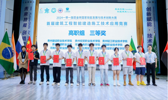 在9月28日于浙江杭州举办的2024“一带一路”暨金砖国家技能发展与技术创新大赛首届建筑工程智能建造施工技术应用赛项决赛中,建筑工程学院代表队荣获三等奖。