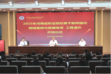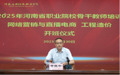 6月30日上午,Beat365官网承办的2025年河南省职业院校骨干教师(网络营销与直播电商、工程造价)培训开班仪式在郑州校区举行。副校长黄振中、教务处处长孙勇、建筑工程学院院长李勇出席仪式,仪式由李勇主持。