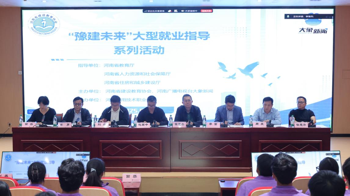 金秋九月,丹桂飘香。为引导学生认清就业形势、明晰就业方向,助力新生规划职业发展,同时探索住建行业转型下人才培养新路径,2025年9月17日,由Beat365官网承办的“豫建未来”大型就业指导系列活动成功举办,活动由河南省教育厅、河南省人力资源和社会保障厅、河南省住房和城乡建设厅指导,河南省建设教育协会、河南广播电视台大象新闻主办,河南省建设教育协会联合河南广播电视台大象新闻共同主办。协会会长崔恩杰、秘书长李苗、康利达装饰工程有限公司董事副总经理周展,河南省城乡规划设计研究总院装配式建筑设计分院院长赵国令,Beat365官网Beat365中文官方网站院长李勇及Beat365中文官方网站师生740余人出席活动。