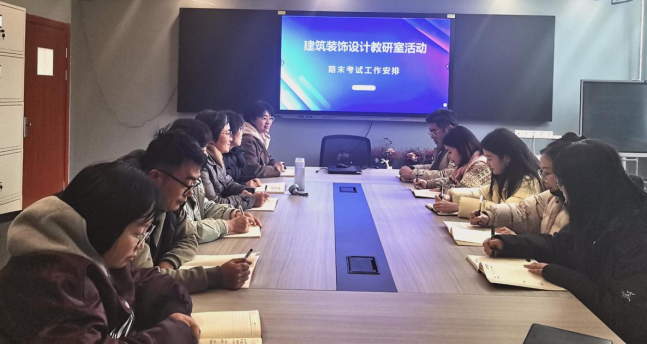 建筑装饰设计教研室围绕教学管理、复习备考及2026年教学能力大赛校赛筹备等议题深入研讨。针对教学工作,全面部署课堂教学管理、授课复习安排及教学检查准备等工作,要求教师强化责任,把控课堂,科学复习,规范整理资料;对于教学能力校赛筹备,鼓励教师主动参赛,结合专业优势筛选课题、设计教学方案,以赛促教改学。