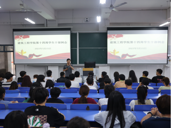 为提高学生干部积极性、主动性以及学生干部的综合素质,为学生提供更好的服务。2023年5月15日中午,建筑工程学院在郑州校区B102教室召开了第十四周学生干部例会。会议由建筑工程学院辅导员李慧杰主持,党总支副书记刘亚娟,辅导员李政、宋春磊、李玉飞、张慧以及22级学生会全体成员和各班班长、团支书参加此次会议。