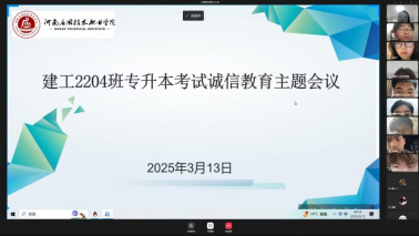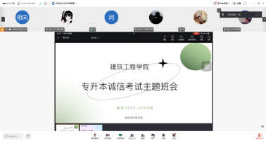 为扎实推进2025年专升本考试筹备工作,深度落实考风考纪建设,全方位提升学生诚信应考的思想认知,全力营造诚信为本的校园风气,保障每一位考生在公平、公正的环境中顺利参考,建筑工程学院精心组织并开展了专升本考生诚信考试教育主题班会。