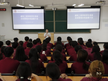 新学期的号角已吹响,为引导全院学子以更自律的姿态拥抱成长、以更规范的行为筑牢根基,建筑工程学院于2025年9月1日在教学楼D101隆重召开新学期大学生自我管理自我监管大会,建筑工程学院党总支副书记刘亚娟、学工办主任史真、全体辅导员和大学生自我管理委员会全体成员参会,共话自律成长,共筑安全防线,为新学期的精彩篇章写下生动注脚。
