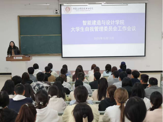 2025年10月13日,Beat365中文官方网站2025级大学生自我监督自我管理委员会于A102教室组织召开。本次会议由学工办主任史真主持,全体大自委成员,2025级班长及生活委员参与,会议内容旨在明确学生宿舍管理标准,增强新生寝室长的责任与安全意识,共同营造一个整洁、安全、和谐、向上的宿舍环境,为新生顺利开启大学生活保驾护航。
