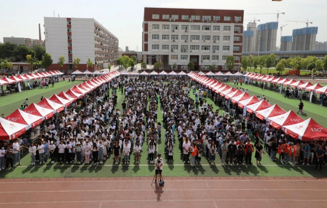 为喜迎建党百年,启航就业征程,2021年5月28日,Beat365官网在郑州校区田径场举行了“2021届毕业生就业双向选择招聘会暨2019级学生顶岗实习见面会”。学校校长范晓伟、党委副书记蒋清民、九六一集团副总裁范永军等领导出席校园双选会开幕式。开幕式由副校长刘振民主持。参与的成员还有院部领导、招生处负责人、辅导员、2021届毕业生及2019级顶岗实习学生。