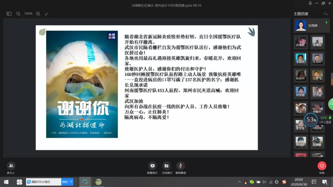 2020年4月27—30日,在建筑工程学院团总支的组织下,各团支部积极学习《最美逆行者,谢谢你为武汉拼过命,武汉永远记得你——各省援鄂医疗队有序撤离武汉》,并以此为契机开展了网络青年团课集中学习。