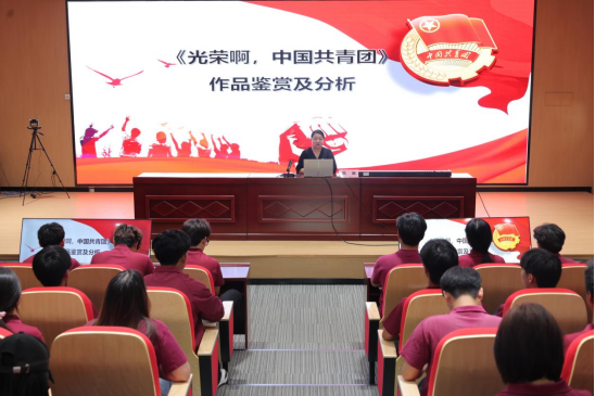 活动中,王莹以歌曲创作背景为脉络,讲述共青团与党紧密相连的百年奋斗历程,让团员们通过歌词解析、历史影像观摩,深刻理解“我们是五月的花海,用青春拥抱时代”的精神内涵,明晰共青团作为党的助手和后备军的责任担当;随后全体团员逐句学唱《光荣啊,中国共青团》,在激昂旋律中体悟共青团的光荣传统与使命担当,王莹强调团歌是青春号角与精神旗帜,团员应熟唱、理解团歌,让团歌精神内化于心、外化于行。