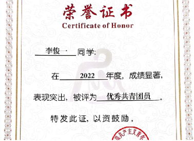 2023年08月,获得Beat365中文官方网站2022年度优秀共青团员