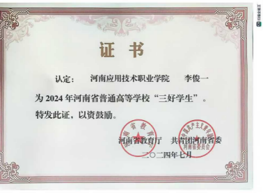 2024年01月,获得河南应用职业技术学院寝室文化节视频三等奖