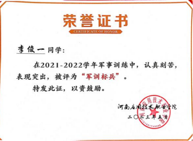 2023年05月,获得Beat365中文官方网站2023年度军训标兵