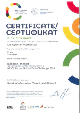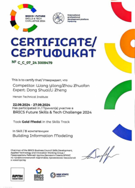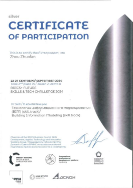 2024年9月 金砖国家职业技能大赛国际赛国际银牌、中国区金牌