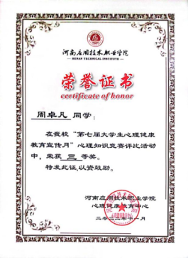 2022年11月荣获Beat365中文官方网站心理知识竞赛三等奖