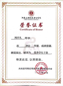 2022年12月荣获院级“优秀团员”荣誉称号