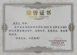 在学习方面,课业上注重理解和掌握,摸索适合自己的学习方法,养成良好的学习习惯。学习目的明确,勤奋学习,刻苦钻研,懂得将书本知识和实践知识相结合,为将来步入社会打下良好基础。积极参加在职业技能大赛、发明杯大赛,在不断的学习中提升自己。