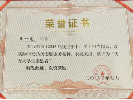 2023年7月 参与“大学生返家乡”志愿活动荣获县级“优秀大学生志愿者”荣誉称号