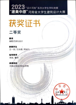 2023年11月 “建美中原”河南省大学生建筑设计大赛装配式深化设计赛项二等奖