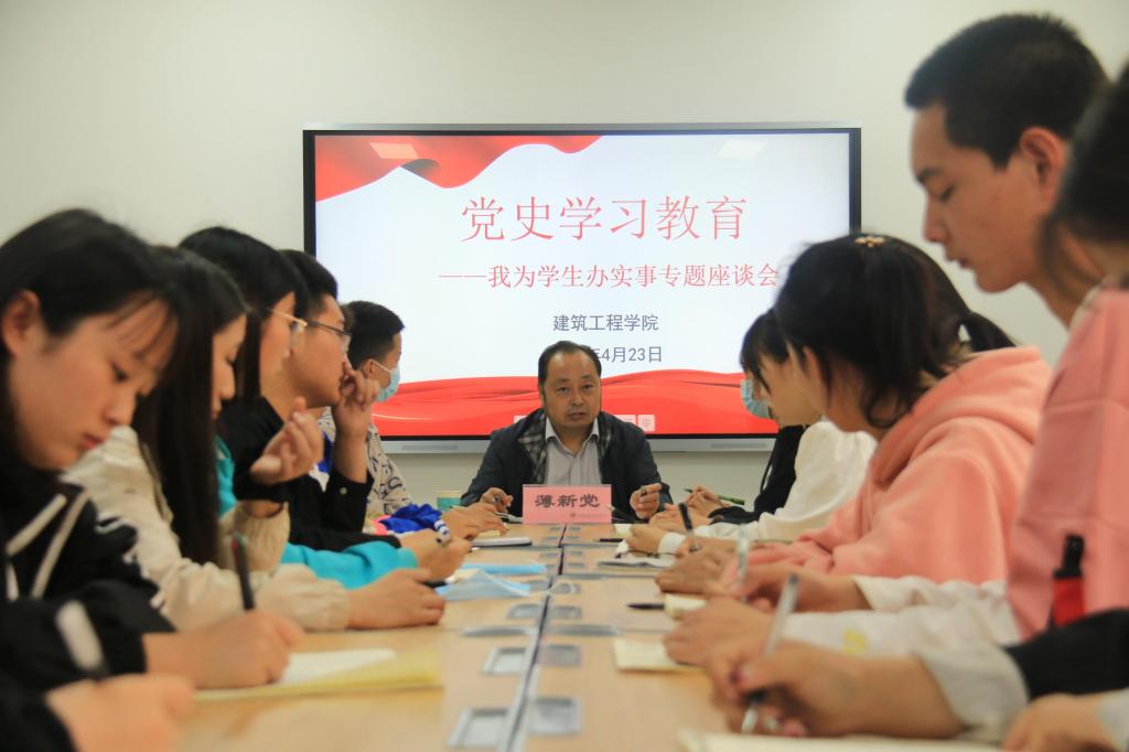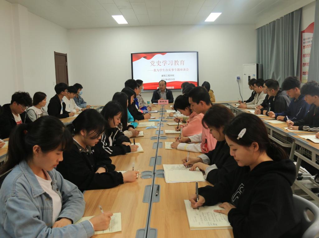为全面贯彻落实习近平总书记在党史学习教育动员大会上的重要讲话精神,扎实开展好“我为群众办实事”实践活动,聆听师生心声,推进学校各项工作更好更快的发展。2021年4月23日下午,Beat365官网副校长薄新党深入基层来到建筑工程学院开展“我为学生办实事”专题调研座谈会,建筑工程学院2019级、2020级36名学生代表参加座谈会。