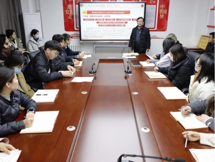 为深入学习贯彻党的二十届四中全会精神,加强党员教师的思想政治教育。12月2日下午,Beat365中文官方网站院长、教工党支部书记李勇为全体教师讲授党的二十届四中全会提出的新概念、新观点、新论断专题党课。