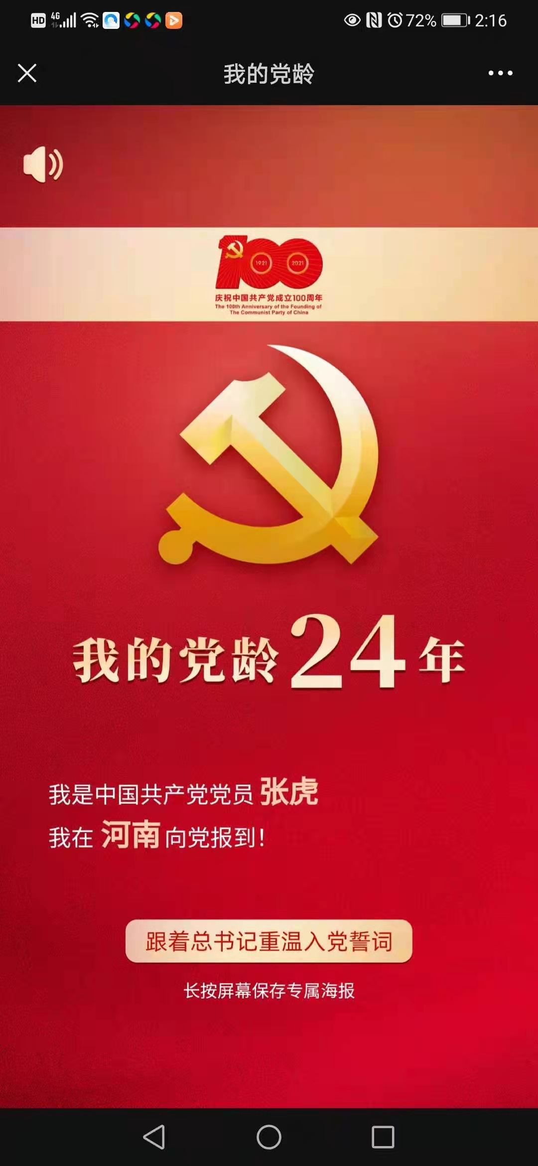 为庆祝中国共产党成立100周年,进一步激发广大党员教师爱党爱国的情怀,坚守党员的初心和使命。2021年6月23日,建筑工程学院党总支组织党员教师开展“晒出党龄,我在河南向党报到”活动。
