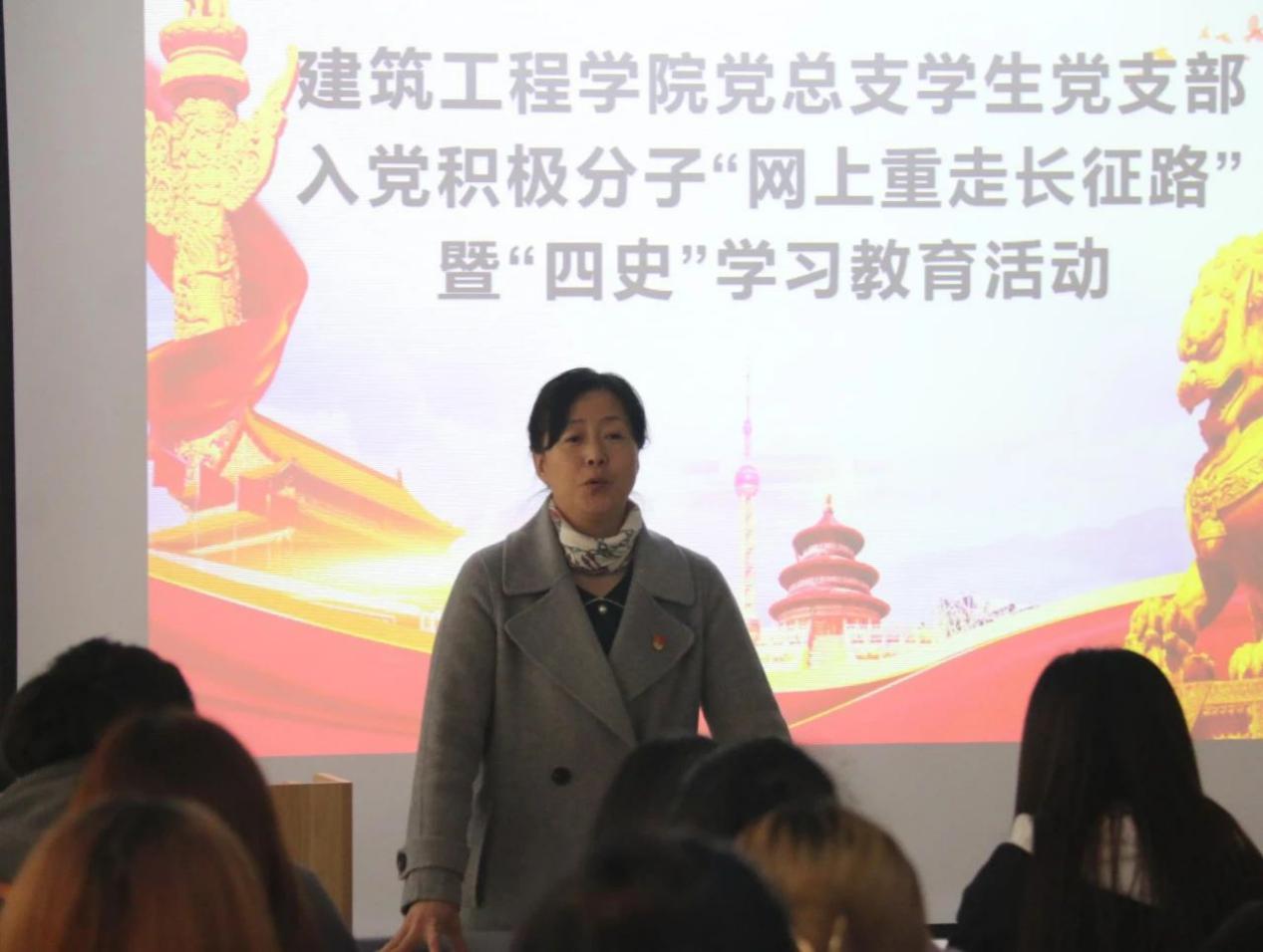 为进一步做好入党积极分子的教育工作,加强对入党积极分子的培养,提高党员发展的综合质量,端正入党积极分子的入党动机,深刻认识入党内涵。我院3月5日组织开展了入党积极分子政治理论主题教育活动。本次学习的主要内容为:“网上重走长征路”和“四史”理论知识。建筑工程学院党总支书记马春燕同志参加本次理论知识讲授。