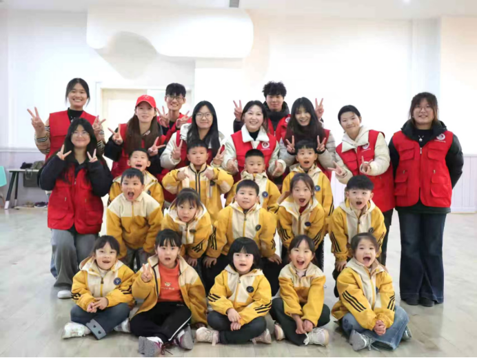 活动现场洋溢着欢声笑语,志愿者们以“游戏化教学”为主线,分阶段引导孩子们感受舞蹈的乐趣。在热身环节,志愿者们化身“节奏小导师”,通过拍手游戏和身体律动,帮助孩子们熟悉音乐节奏;在舞蹈教学环节,志愿者们选用活泼可爱的儿童歌曲,分解动作、逐步教学,并设计“模仿小动物”等趣味互动,让孩子们在模仿中学习,在律动中表达自我;在展示环节,孩子们在志愿者的陪伴下,自信地舞动身体,展现出天真烂漫的童真风采。