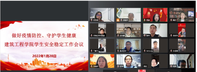 学生安全是学校改革发展的基本前提,为了做好假期学生的安全稳定工作,2022年1月28日,建筑工程学院组织全院三个年级18名专兼职辅导员召开了学生安全稳定工作专题会议,会议由党总支书记马春燕主持。